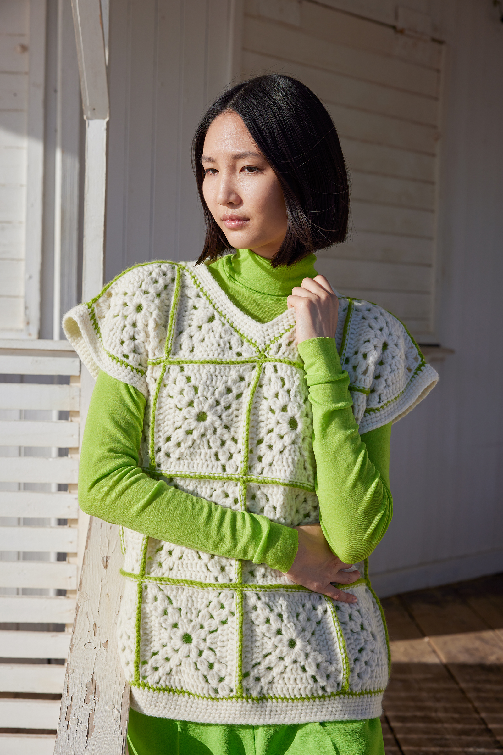SUN HOUR is the kind of layer that transforms whatever you pair it with. Each stitch creates space for the underlayer to shine through, adding depth and complexity. Though we promise, it’s not as complicated as it may look.